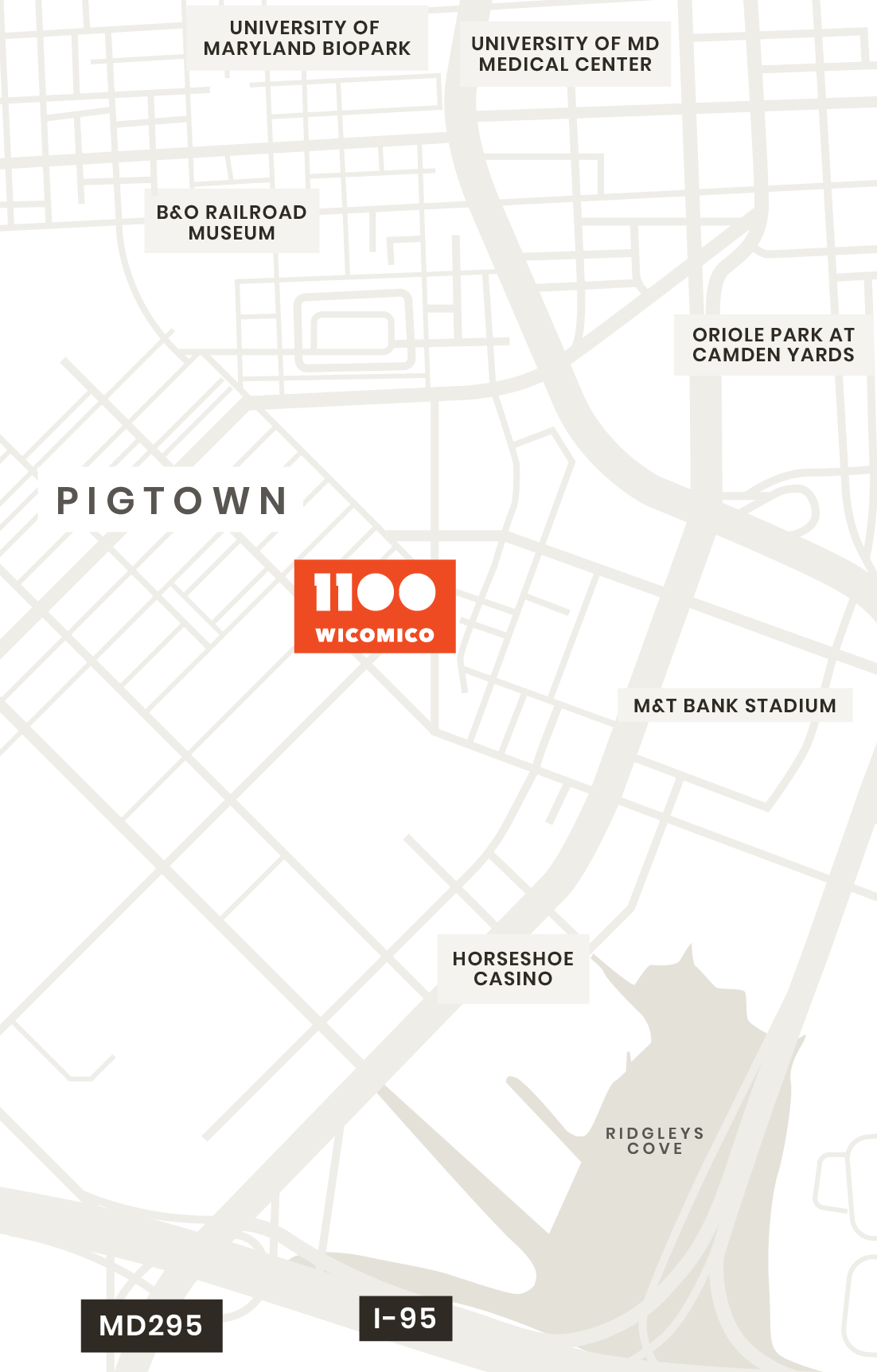 Sitting at the connecting point of the Pigtown neighborhood and the Carroll-Camden Industrial District, the BIC is the center of one of Baltimore’s hardest working areas. Surrounded on 3 sides by blocks of modest worker homes that once supported the countless blue-collar jobs focused around the B&O Railroad and close proximity to the harbor. Today the area is adjacent to the Stadium and Entertainment District and the growing University of Maryland Biopark.